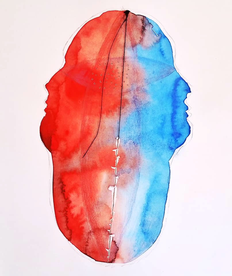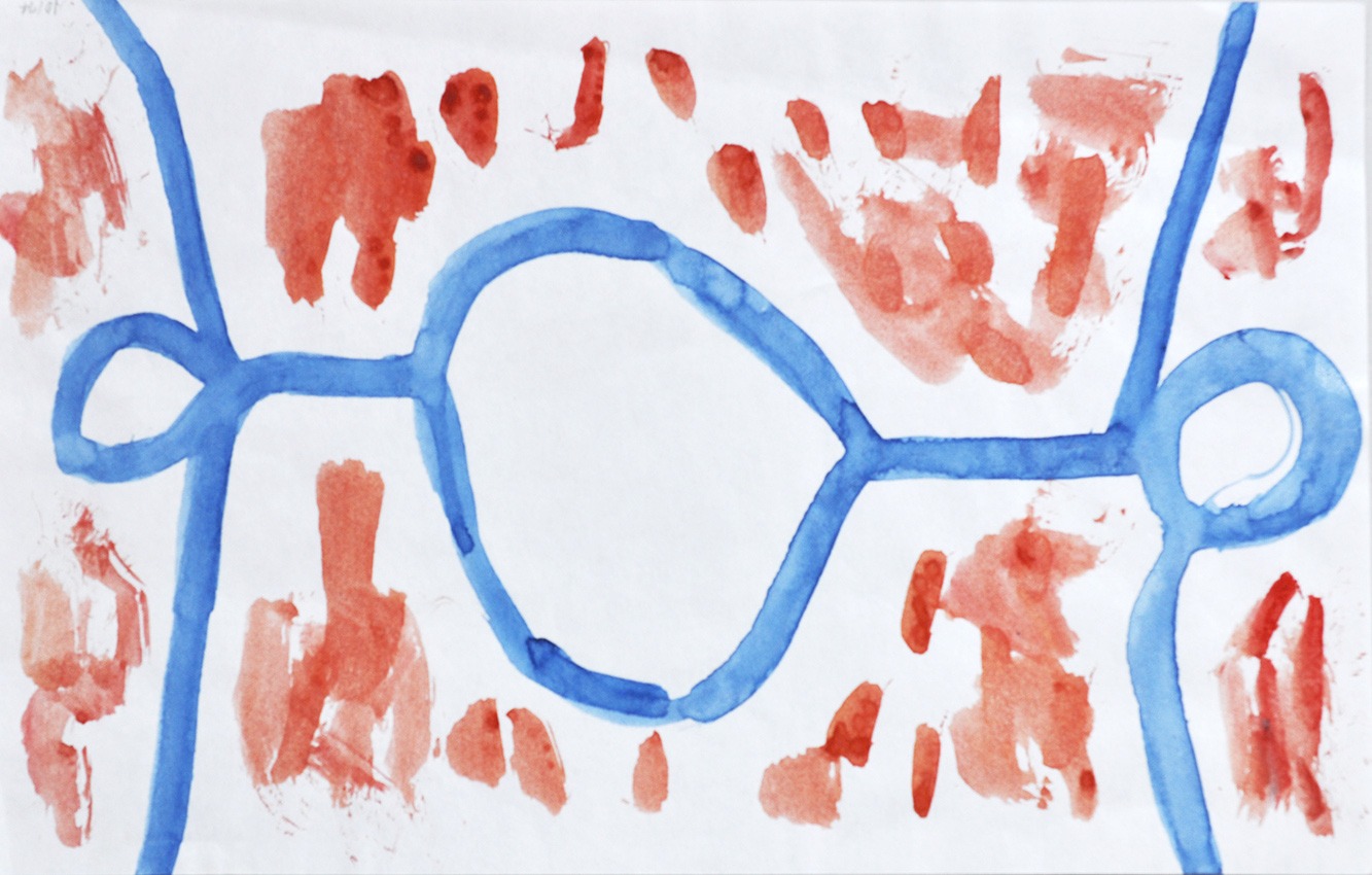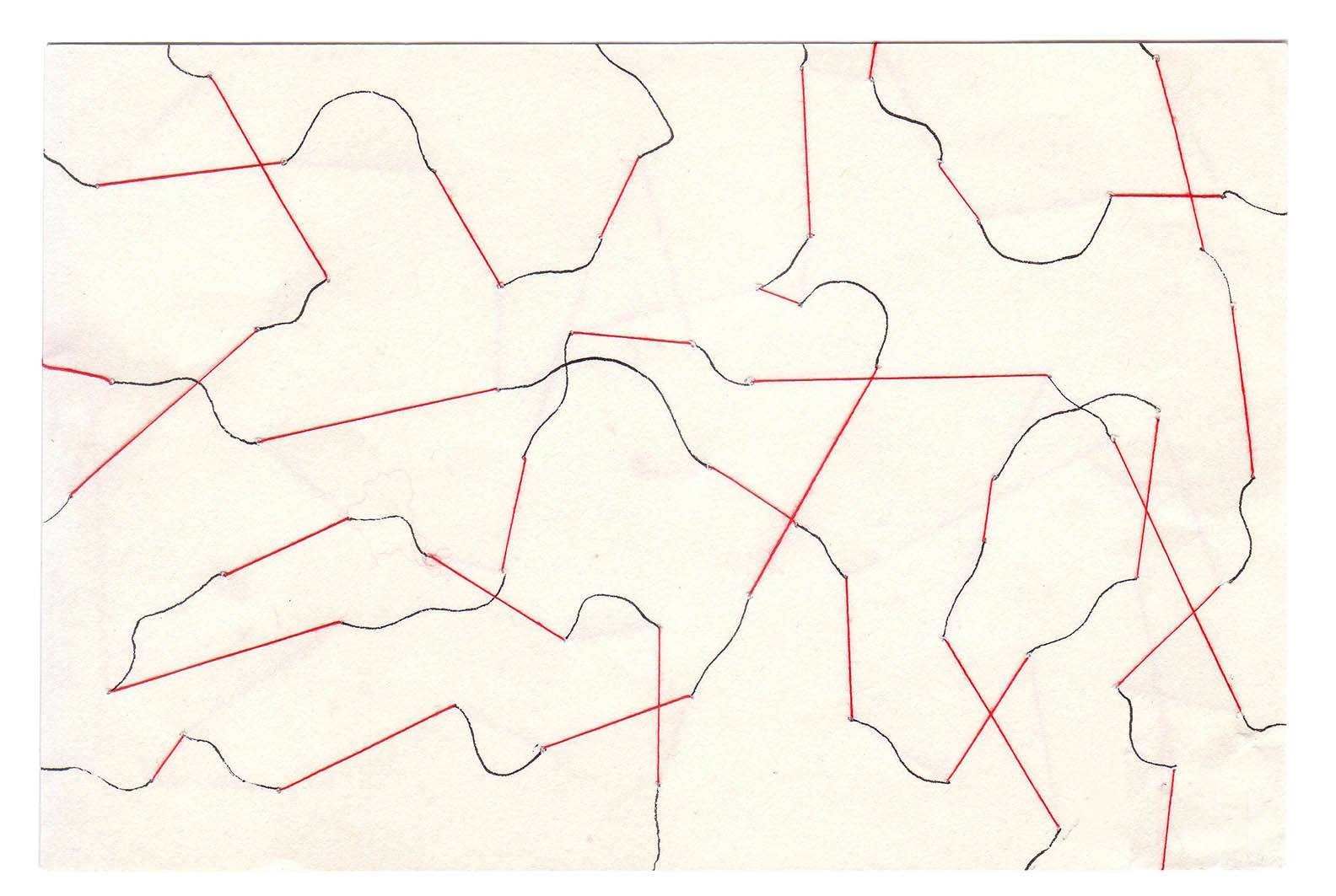 It’s not uncommon for the threads that stretch across the leaf, crossing and branching, to resemble the roads and paths of a map. Often the leaves have holes that are outlined with red paint and then look like wounds.