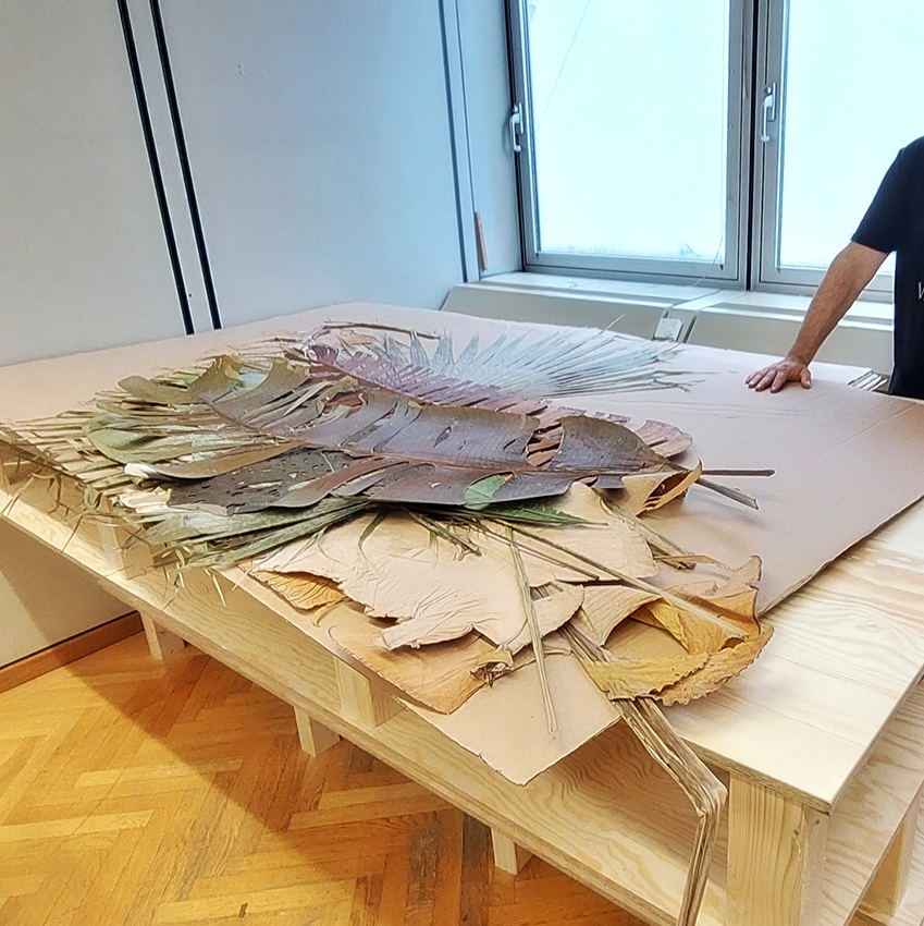 Ich versuche die sich ständig verändernde Beziehung zwischen Mensch und Umwelt durch persönliche Metaphern zu verstehen. Wenn ich meine Blatt – Objekte auf Wanderungen mitnehme und sie an neuen Standorten in der Natur relokalisiere, entsteht ein widersprüchliches Gefühl von Verlust und Verbindung. Welchen Platz nehmen wir im Verhältnis zur Natur ein? Wie beeinflussen wir ihre Zyklen, die sich auch auf uns auswirken? Meiner Meinung nach gibt es eine Beziehung zwischen Mensch und Natur über Zeit, Raum und Wahrnehmung hinweg, die uns alle miteinander verbindet, auch wenn wir es oft kaum merken.