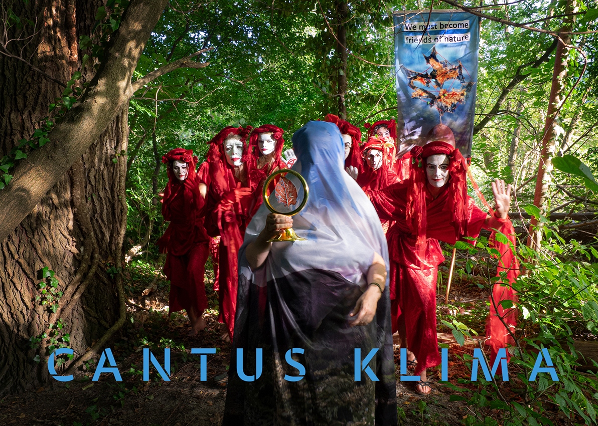 Der CANTUS KLIMA ist ein strenger, repetitiver Sprechgesang, der sich formal zwischen katholischen Prozessionen und Klimademonstration in einem postapokalyptischen Szenario bewegt. Dabei werden besonders kleine, fragile Blattscape-Kunstwerke in Monstranzen zur Schau gestellt, die sonst nur aus dem religiösen Kontext bekannt sind, ganz nach dem Motto „Worship nature instead of old bones“. Eine gesichtslose Schamanenfigur erhebt Bittgebete, Fürbitten und Versprechungen, die das Verhalten der Menschheit gegenüber der Erde thematisieren. Andorrer bedient sich bewusst Ritualen unserer religiösen Herkunft und sieht sich darin in der Tradition der Aktionen von Herman Nitsch. Über allem schwebt der Beat des „Klima-Chant“, in den das Publikum einbezogen und zum handelnden Mitakteur wird. Versprechen und Handeln statt Anprangern.