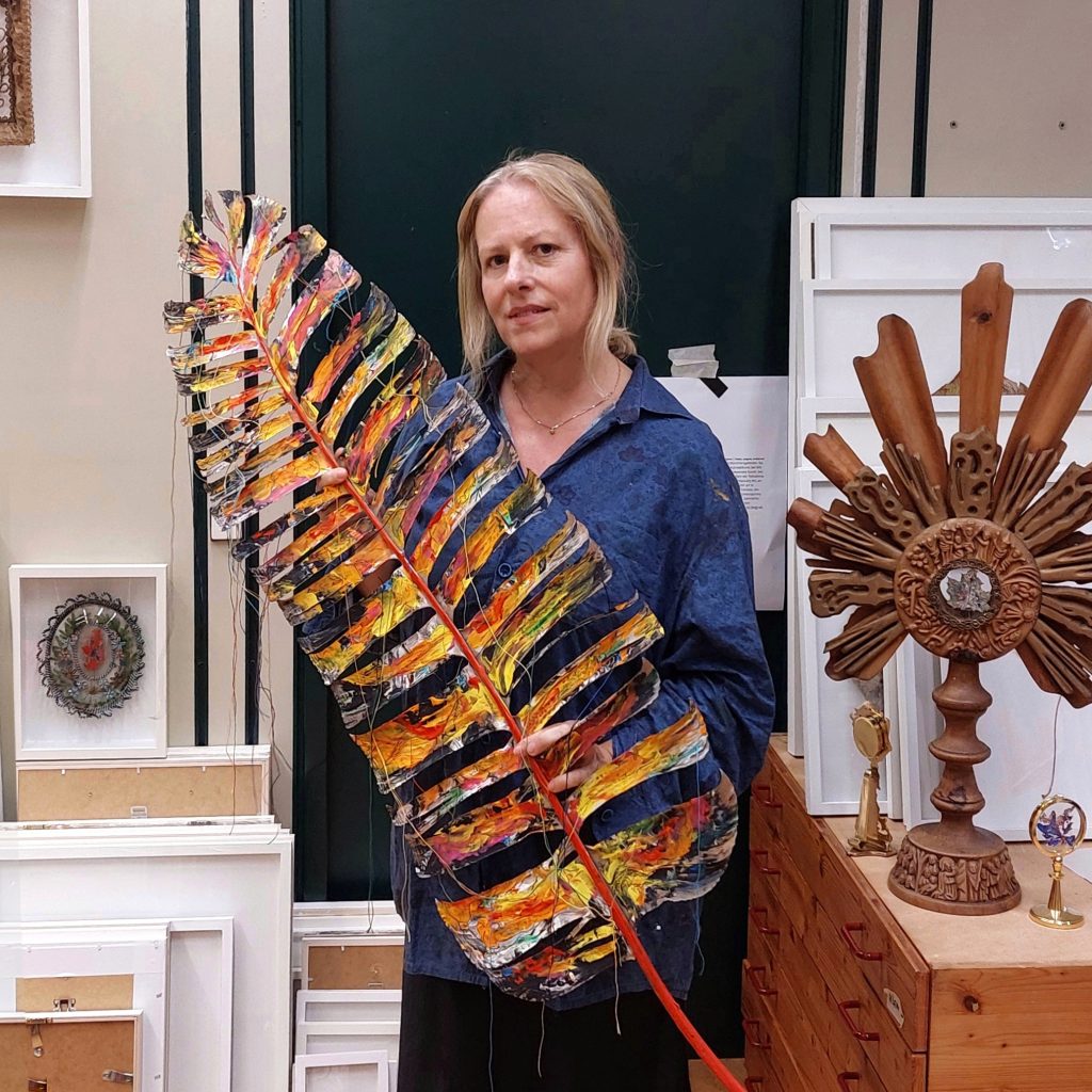 Im Zentrum von Angela Andorrers Schaffen stehen Pflanzenblätter – jene stillen Produzenten von Sauerstoff, die das Leben auf der Erde erst ermöglichen. Die Künstlerin unterbricht deren natürlichen Verfall, presst, konserviert und beschichtet sie, um sie anschließend mit Farbe, Faden und Perlen zu veredeln. Besonders faszinieren sie beschädigte Blätter: von Parasiten befallene, von Insekten oder Schnecken durchlöcherte, von Pilzen gezeichnete Exemplare. Deren gerissene Oberflächen und Äste flickt Andorrer behutsam in einem absurd anmutenden Versuch, die Natur zu heilen. In dieser poetischen Geste liegt eine feinsinnige Auseinandersetzung mit dem Verhältnis von Mensch und Umwelt, von Zerstörung und Fürsorge.