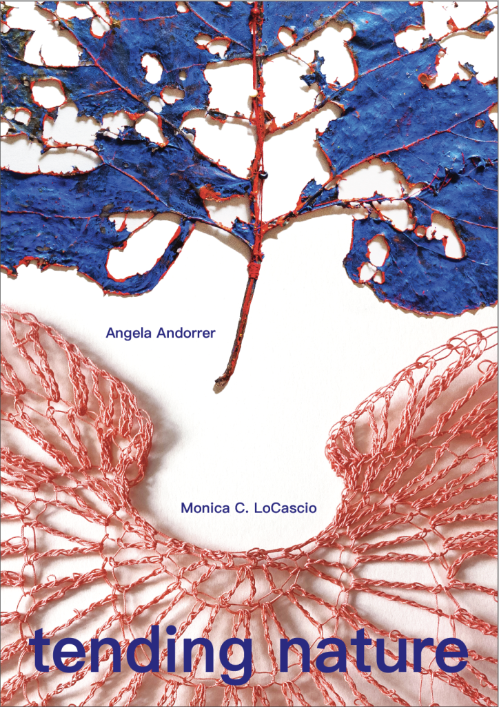 ‚Tending Nature‘ präsentiert – im allerersten Raum des Pavillon 7 – textil- und naturbasierte Arbeiten der Deutschkanadierin Angela Andorrer und der Amerikanerin Monica C. LoCascio, die beide ihren Lebensmittelpunkt in Wien haben. Mit ihren Werken würdigen beide KünstlerInnen die Aktivität von Organismen, die für die Ökologie unverzichtbar sind und hinterfragen gleichzeitig, was es bedeutet, sich um die Umwelt zu ,kümmern’. Während Andorrer Pflanzenblätter, die teils von Parasiten zersetzt sind, bemalt, ergänzt und repariert, häkelt LoCascio organähnliche Skulpturen aus gefundenen Schnüren und bestickt Textilien, die in Zusammenarbeit mit Bakterien entstanden. Andorrer hält überlebenswichtige Organismen im Moment ihres Verfalls fest, bei LoCascio werden die Organismen trotz ihrer symbiotischen Beziehung zu uns allgemein als unwichtig oder sogar gefährlich eingestuft.